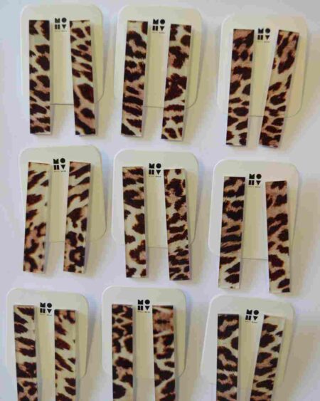 Brincos em animal print, inspirados na Scary Spice. São todos diferentes, selvagens e rebeldes. Irreverentes, cada um tem o seu próprio padrão, o rebuliço não se copia.
