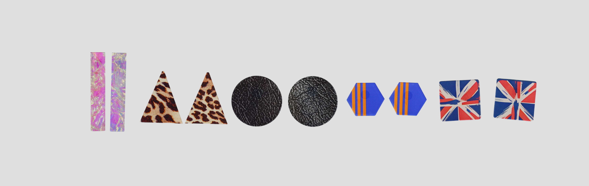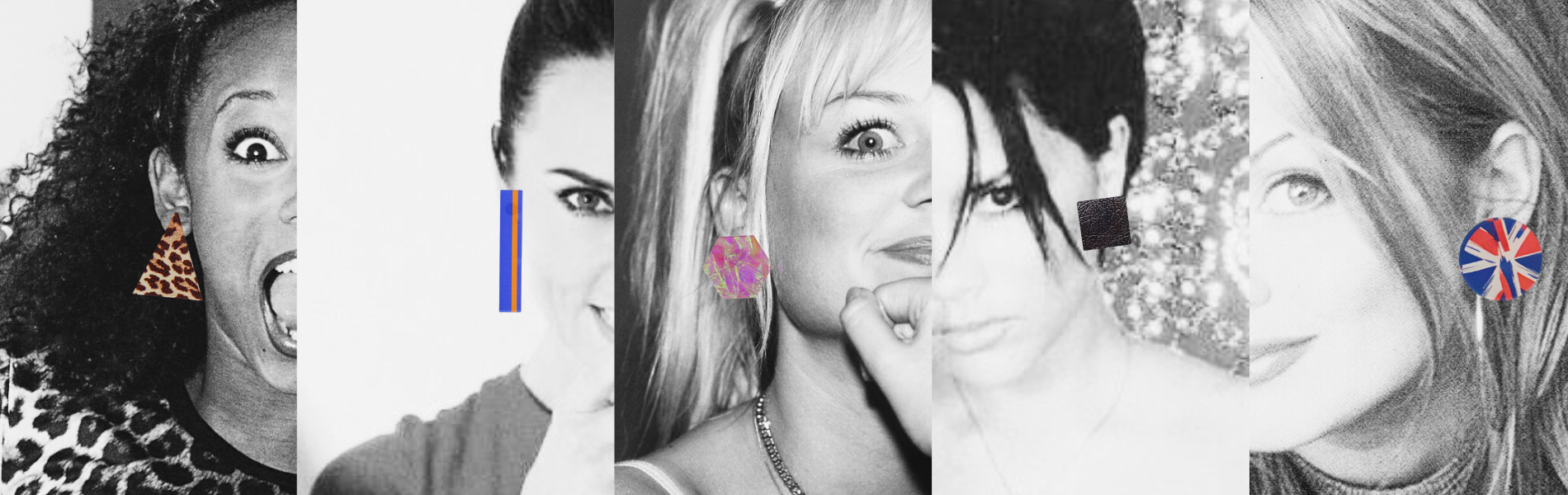 Cinco padrões de brincos icónicos, inspirados nas musas que marcaram uma geração: as Spice Girls. Cada padrão traz de volta a energia de cada uma delas. Foram feitos em 5 modelos dos Moks com as formas geométricas mais clássicas (redondo, quadrado, retângulo, triângulo e hexágono).